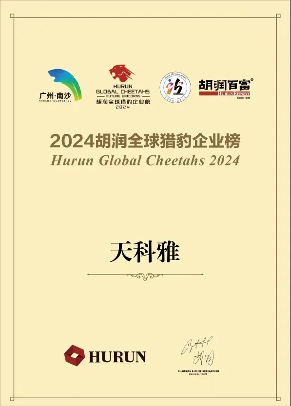 天科雅榮登《2024胡潤全球獵豹企業榜》