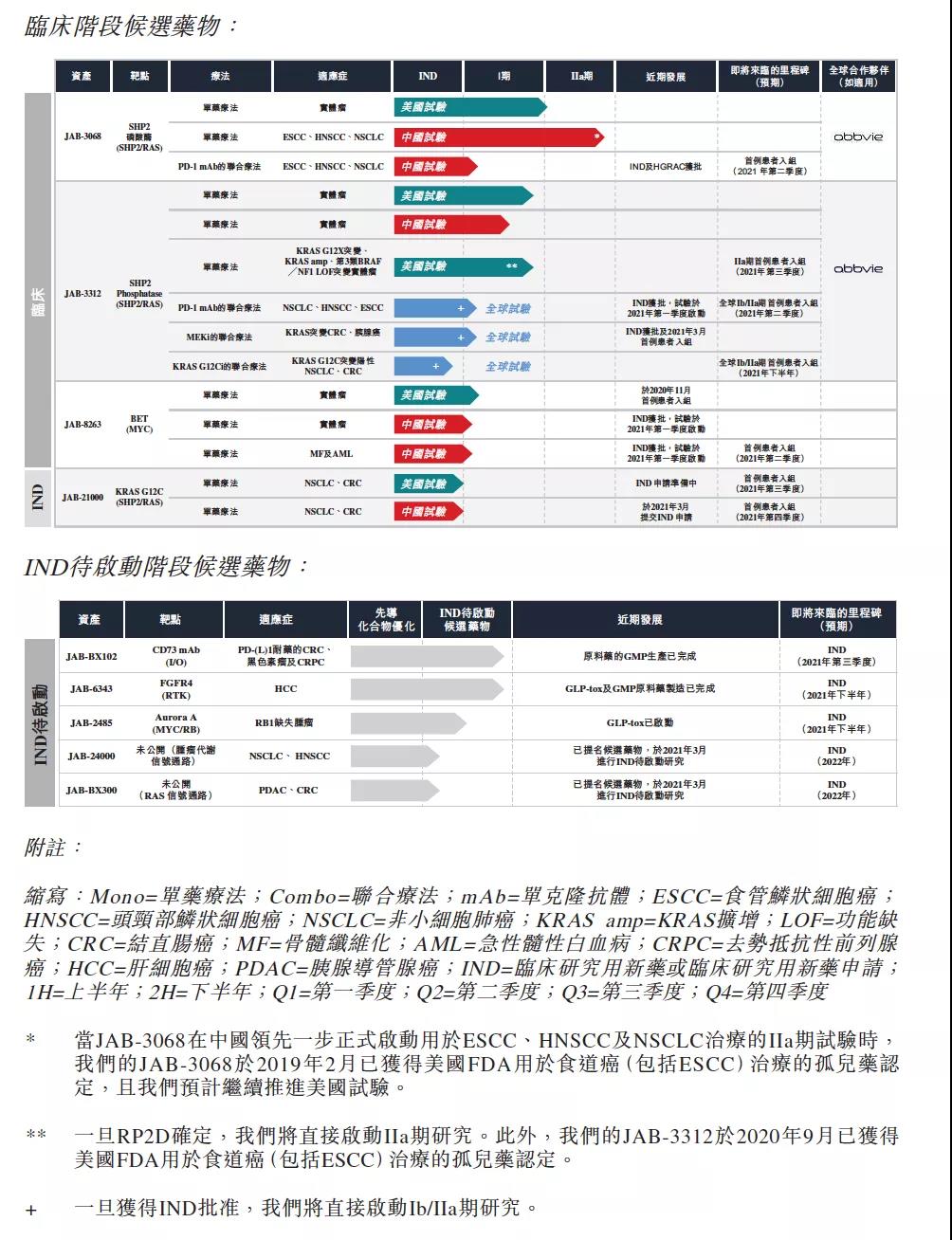 ??颂婺嵊?011年底獲得上市批件,激勵了很多海歸學人回國,也吸引了很多資金投入,為中國今日如火如荼的新藥研發局面起到了先行指引作用。王印祥博士作為項目的領導者之一,在那個新藥研發環境還不成熟的年代,帶領團隊做出同類創新藥,直接沖擊了跨國藥企的天價藥,成功造福了廣大中國患者。 2017年8月,王印祥博士離開了他經營多年的貝達藥業,轉而創立加科思藥業,開啟新的職業篇章。王印祥博士并沒有辜負“Jacobio”這個名字,成功抓住了“SHP2抑制劑”這個機遇,做出了一款First-in-Class的藥物,并于2020年5月與世界制藥巨擎艾伯維達成了首付款4500萬美元,總交易額超過8.55億美元的授權協議,加科思在保留中國市場權益的同時,擁有全球市場份額中超過10%以上的分成,打響了加科思的“出海第一槍”,也使得加科思成為少有的在商業化之前就能產生收入并擁有造血機制的公司。 2021年6月18日,加科思藥業完成了SHP2抑制劑JAB-3312臨床試驗的首例患者給藥,觸發了2000萬美元的里程碑付款。